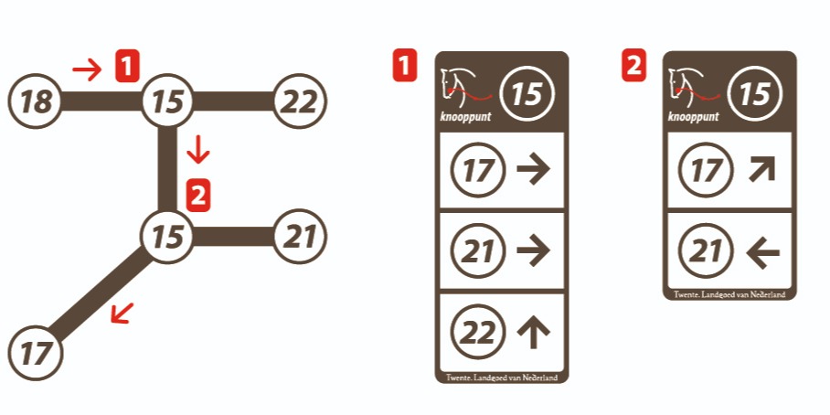 Op de routes van het paardrijnetwerk Twente kom je vaak gecombineerde knooppunten tegen. Op deze infographic leggen we uit wat dat zijn. Als je het niet helemaal begrijpt, heb je gelukkig je paard bij je.